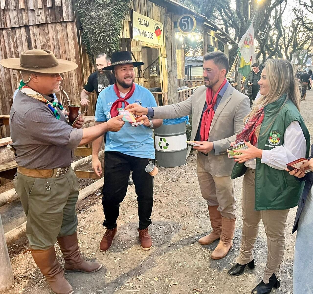 A Frente Parlamentar de Homens Pelo Fim da Violência Contra a Mulher realizou, na tarde desta quarta-feira (17), uma ação de conscientização no Acampamento Farroupilha, no Parque Harmonia, em Porto Alegre. A atividade contou com a parceria da Defensoria Pública do Rio Grande do Sul e buscou dialogar com a comunidade sobre a necessidade de ampliar o enfrentamento à violência contra a mulher.